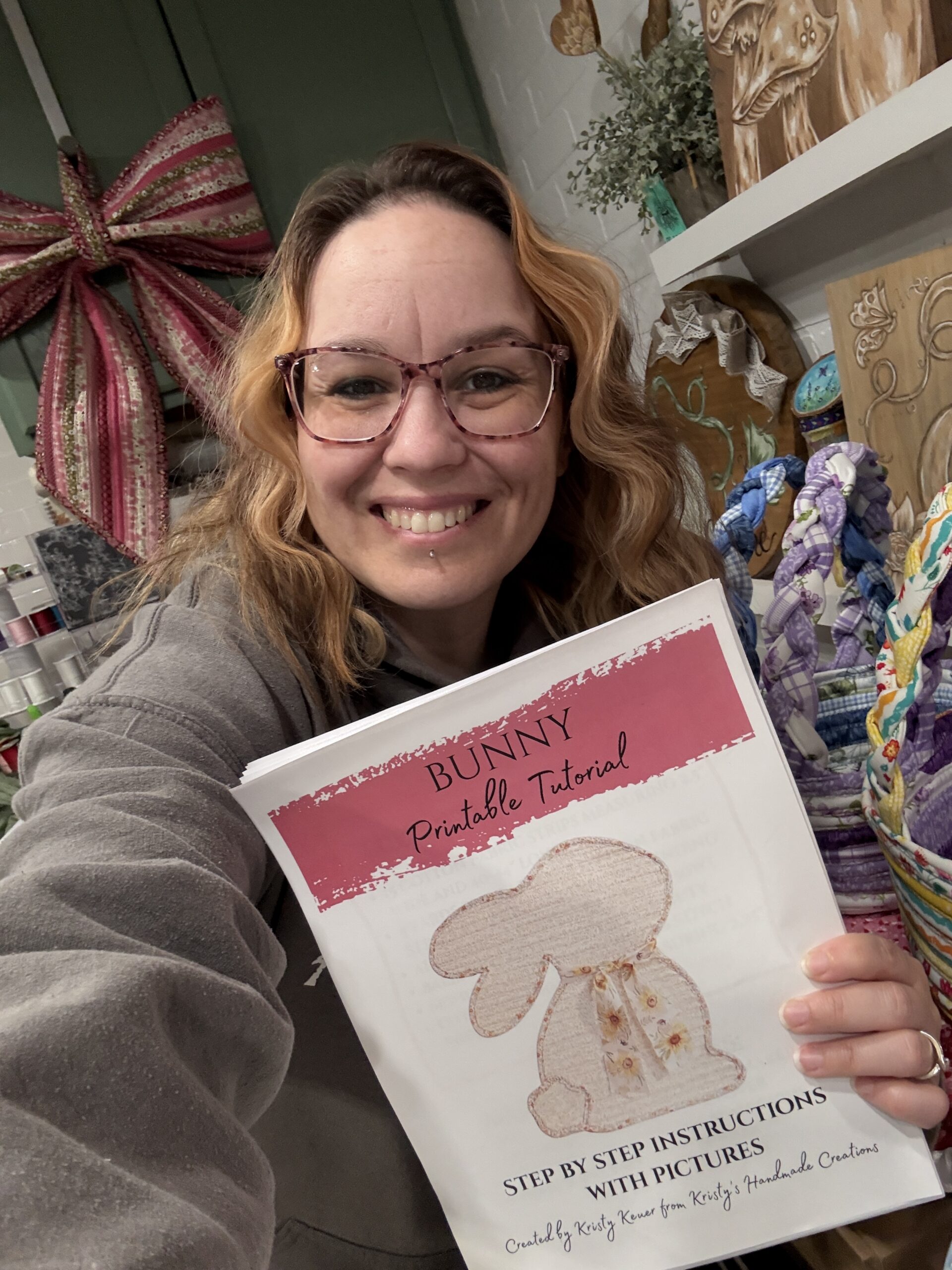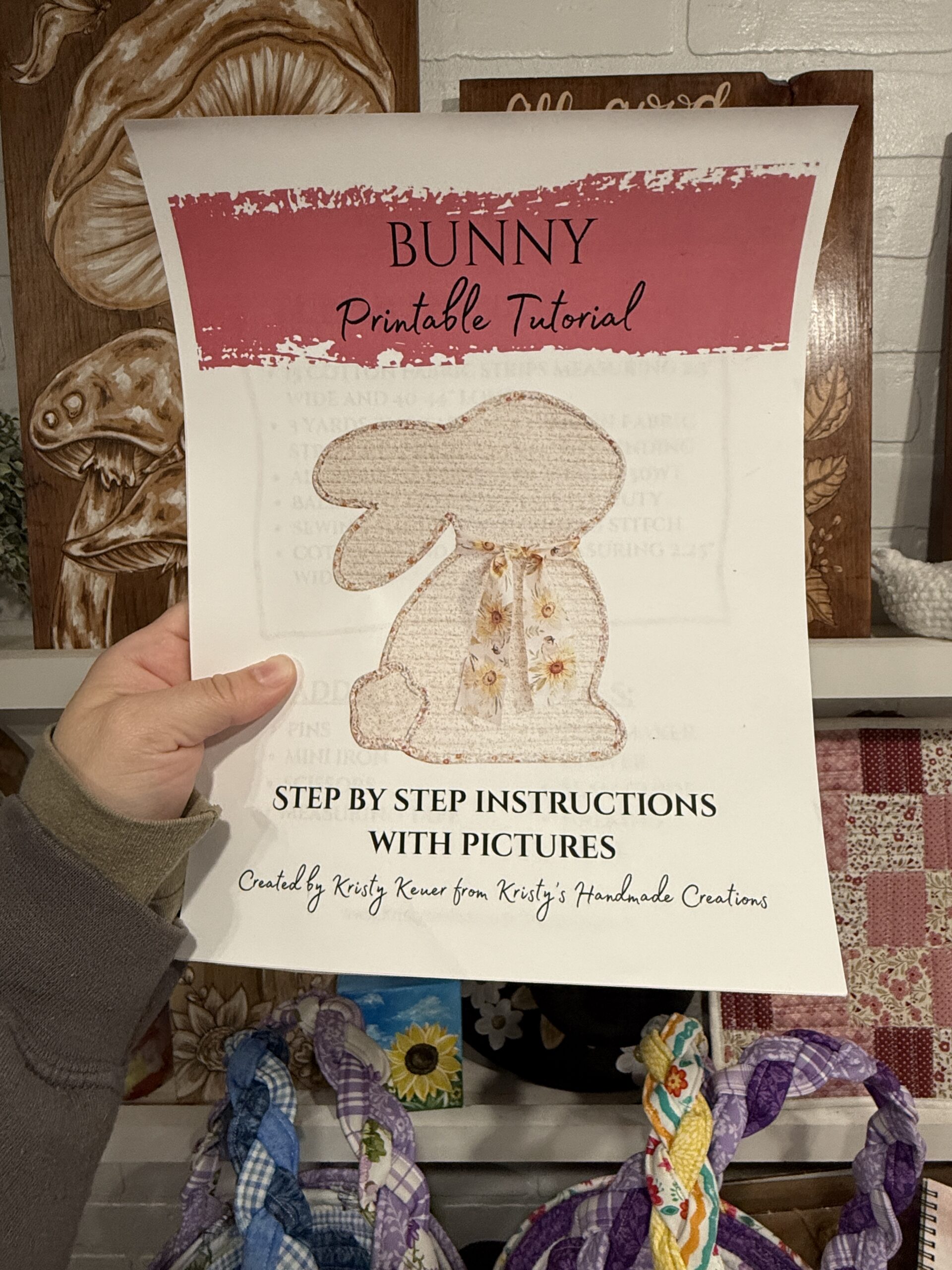 This is for one Bunny Door Hanger Pattern downloadable printable. It is a tutorial explaining how I make my fabric bunny door hanger using fabric tubes made from jelly roll fabric strips. It is a thirty page tutorial you can print out after purchasing.