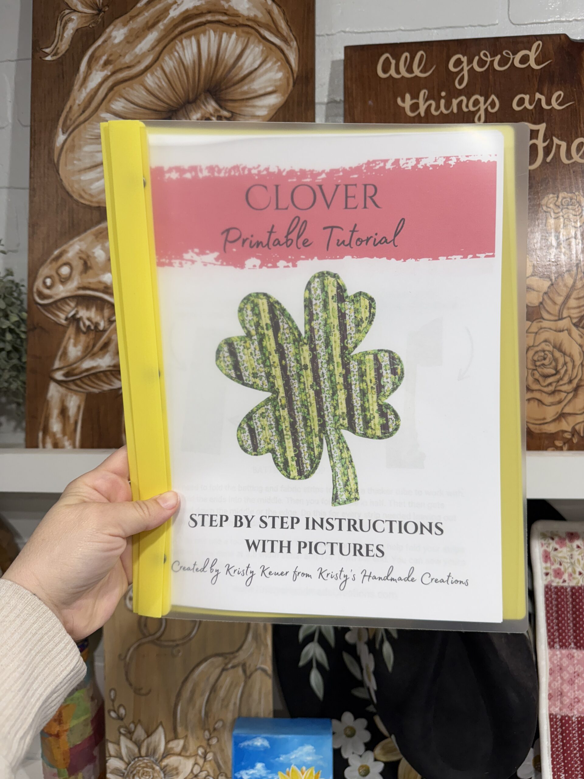 This is for one Clover Door Hanger Pattern Tutorial. This will explain how I make my clover door hanger using fabric tubes made from fabric strips. It is a twenty two page tutorial. This will be printed in color at my home and put together in a three prong folder and mailed to you.