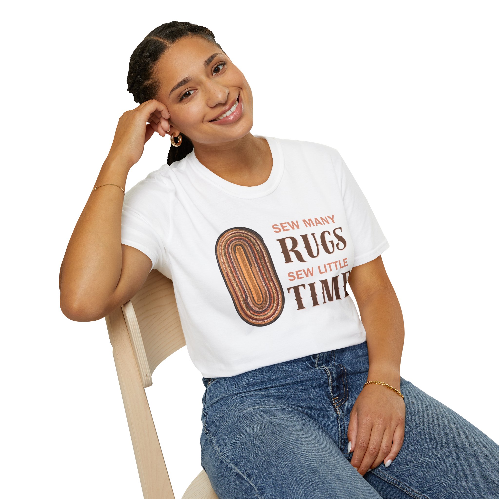 This shirt features the artwork of Kristy Keuer on it. The artwork featuring hand made fabric rug made by Kristy. Colors may vary slighlty with each print.